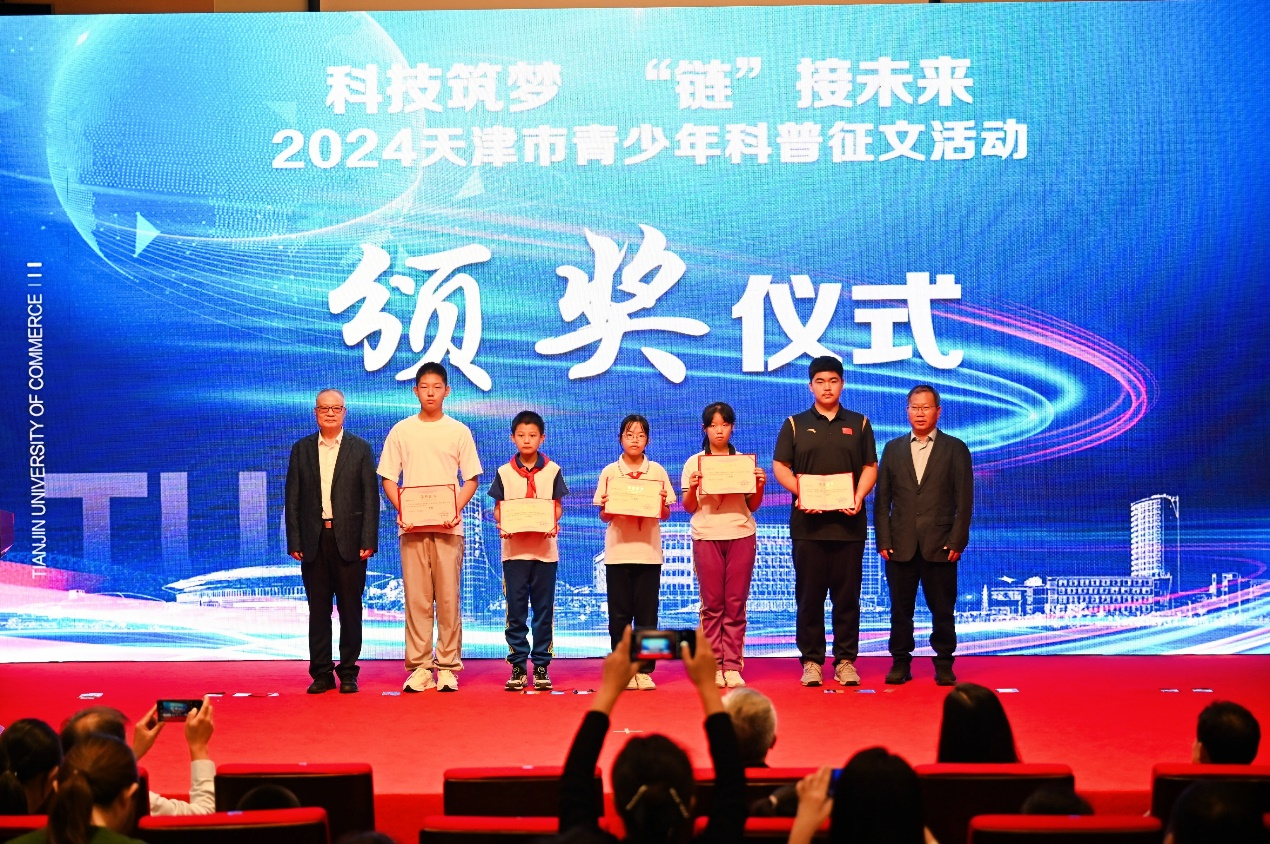 在“科技筑梦,‘链’接未来”天津市青少年科普征文活动的颁奖仪式环节中,与会的专家和领导为获奖学生代表颁发了获奖证书,《青少年科技博览》主编周四红为获奖学生代表佩戴了杂志的特约小记者证,新蕾出版社副总编辑高雅为获奖学生代表颁发了“创意科普小作家研学活动邀请函”。据悉,此次科普征文活动由beat365英国官方网站、天津市科普思政研究会、《青少年科技博览》杂志、新蕾出版社联合举办,旨在普及天津产业链布局规划,促进科技教育人才一体化发展,推动崇尚科学风尚的形成。