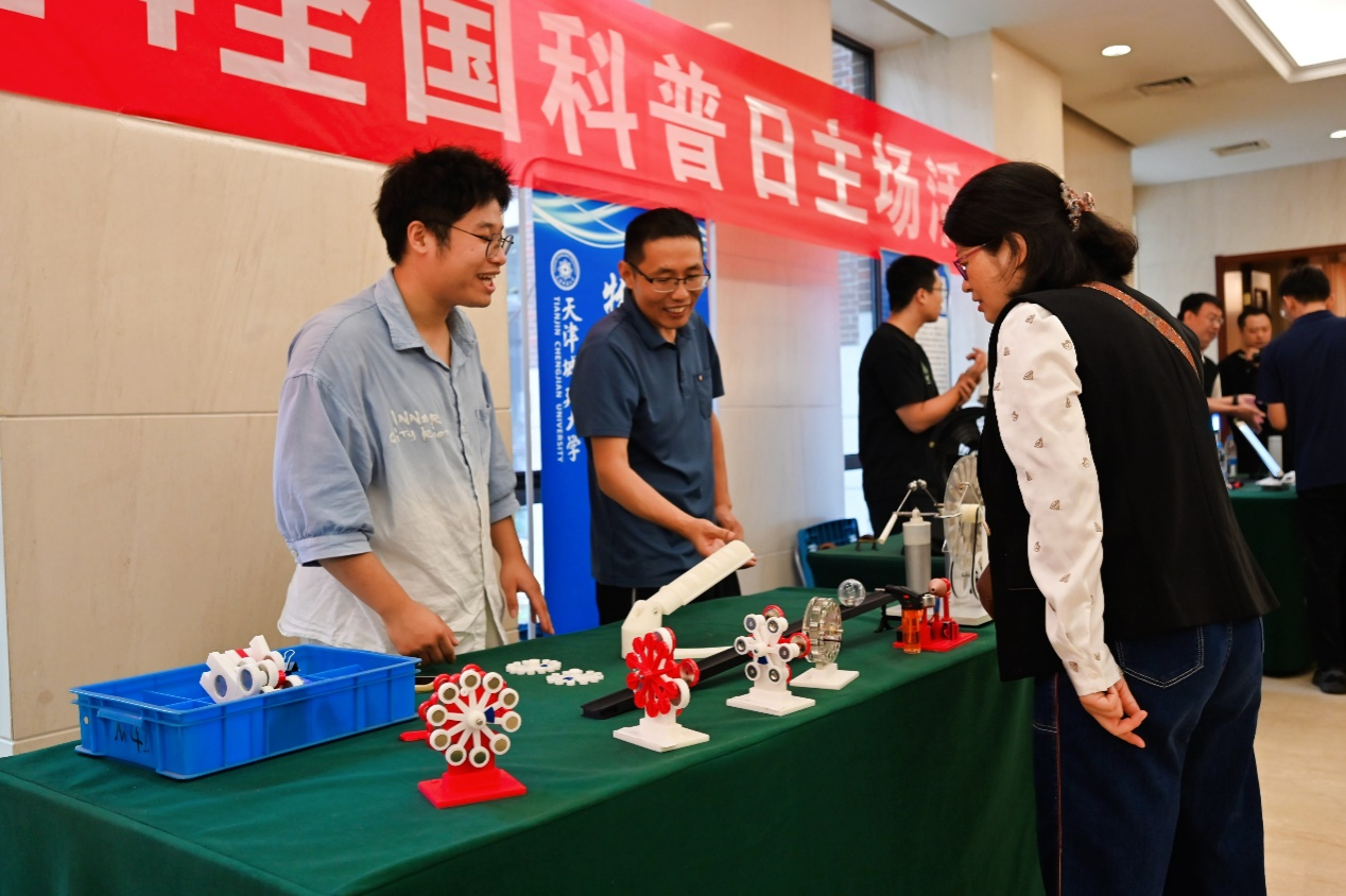 科普研讨会环节,来自多所学校的专家学者就科普资源开发、科普项目申报、科普课程建设以及科普活动组织等相关主题进行汇报交流。在科普资源展示中,来自天津中德应用技术大学物理创新与应用科普基地、天津城建大学物理科学与创新实践科普基地、河北工业大学物理科普基地、天津理工大学物理科普基地的师生展示了“磁力增速器”“离子推进器”“蜗牛球”等丰富多彩的科普产品,吸引了与会人员积极参与互动,亲身体验科学的魅力。