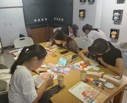 党委学工部在“弘毅”劳动坊组织开展“国泰民安,青春告白”掐丝珐琅玻璃画手工制作活动,各学院学生代表在民俗文化弘扬社的带领下进行手工制作,在一笔一画中勾勒出对祖国的深情告白。活动现场,同学们观看掐丝珐琅非遗技艺纪录片,制作掐丝珐琅玻璃画小夜灯,通过勾画线稿、掐丝填色、风干安装等步骤,绘制出“红星闪闪”“我的中国心”“破浪红船”等图案的作品,表达对祖国的深沉热爱和美好祝愿。