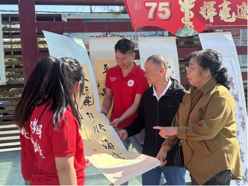 管理学院举办“一笔一画绘国庆,一心一意颂中国”校园绘画活动。同学们一笔一画勾勒出祖国的壮丽山河、五星红旗的飘扬风采、雄伟的天安门……用实际行动为祖国母亲送上最真挚的祝福。马克思主义学院研究生赴北辰区佳欣里社区开展“挥毫迎国庆,泼墨颂清风”活动,与社区居民一起共同庆祝祖国母亲75周年华诞。大家用各自擅长的书法字体书写出笔酣墨饱、刚劲有力的作品,为祖国母亲送上诚挚祝福。离退休工作处组织开展书画摄影展,退休老同志满怀对伟大祖国的热爱,饱蘸激情,倾心创作了一幅幅精美的艺术作品。