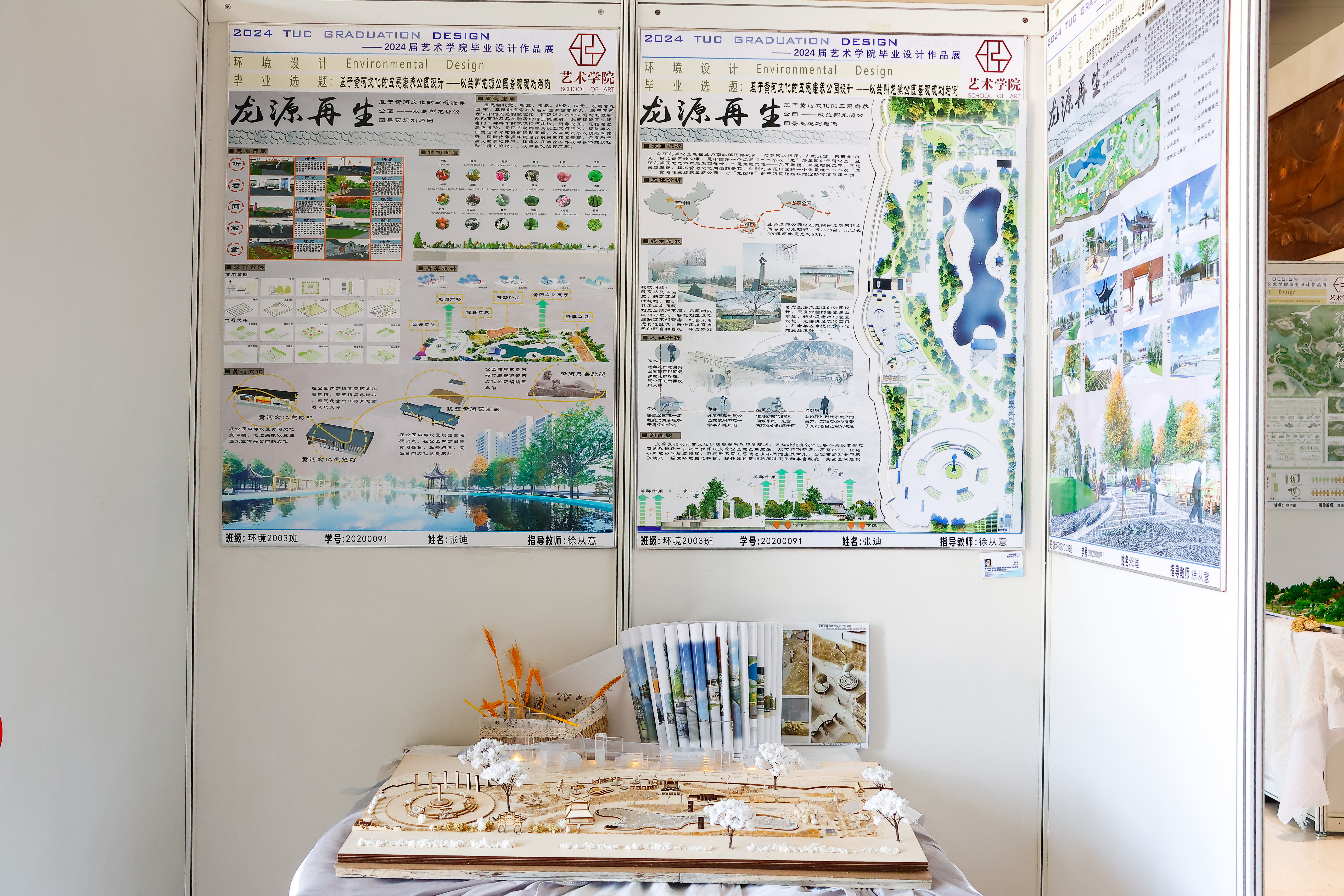 本次展览主题为“岁聿云暮”,不仅是表达时间的流逝,也是表达艺术学院学子对未来的美好向往和无限憧憬。希望同学们可以珍惜时间,把握当下;反思过去,成长自我;面向未来,勇敢前行。展览将持续至6月5日,分为四个展段,依次展出环境设计、视觉传达设计、工业设计、绘画、动画共五个专业的近400名毕业生作品。展览作品包含创作模型、视频、展板、交互、文创、绘画作品等。开幕式后,嘉宾们参观展览作品,并与现场师生进行深入交流探讨,对同学们充满创意的设计作品给予了充分肯定。