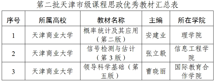 近日,天津市教委公布了第二批天津市级课程思政示范课程、课程思政优秀教材和首批天津市级课程思政优秀案例评选结果,beat365官网共有4门课程、3本教材、2个案例成功获批。