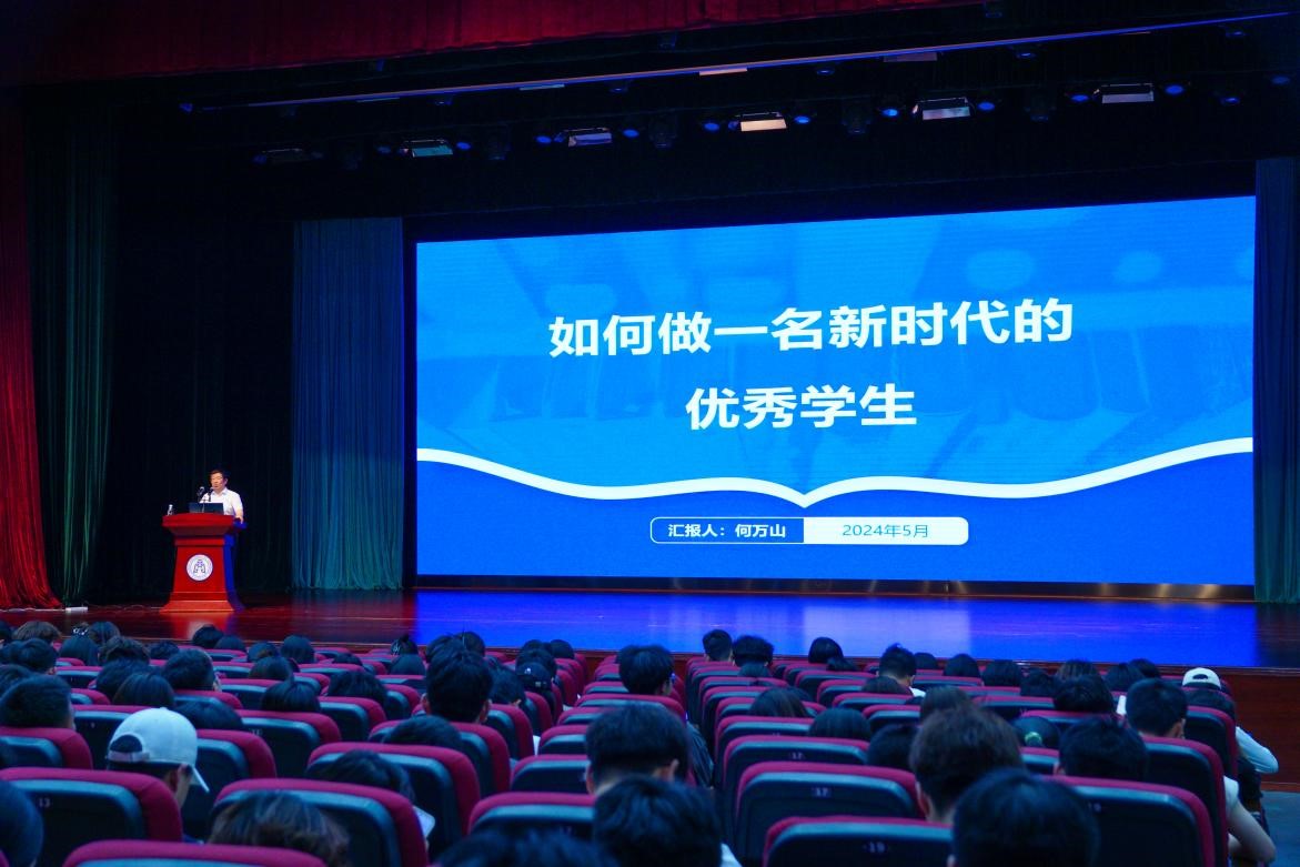 5月31日下午,机械工程学院联合马克思主义学院特邀全国劳动模范何万山到校作“如何做一名新时代的优秀学生”专题报告。马克思主义学院党委书记刘振强、机械工程学院党委书记张莹、机械工程学院院长刘圣春、机械工程学院党委副书记王珊出席,机械工程学院及马克思主义学院学生党员、入党积极分子等学生代表400余人参加。