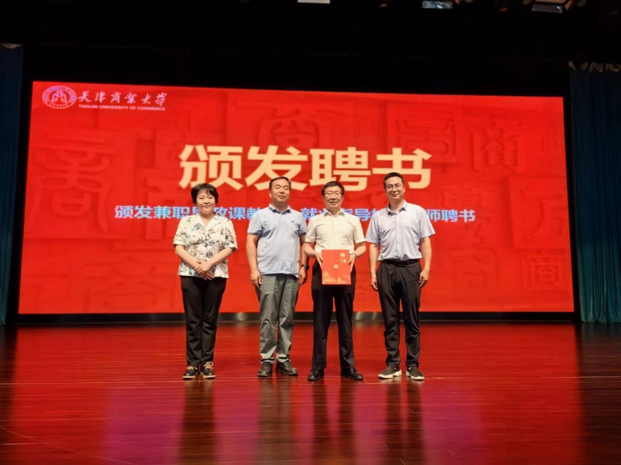 报告会现场,刘振强、张莹、刘圣春为何万山颁发了兼职思政课教师、就业指导校外导师聘书。