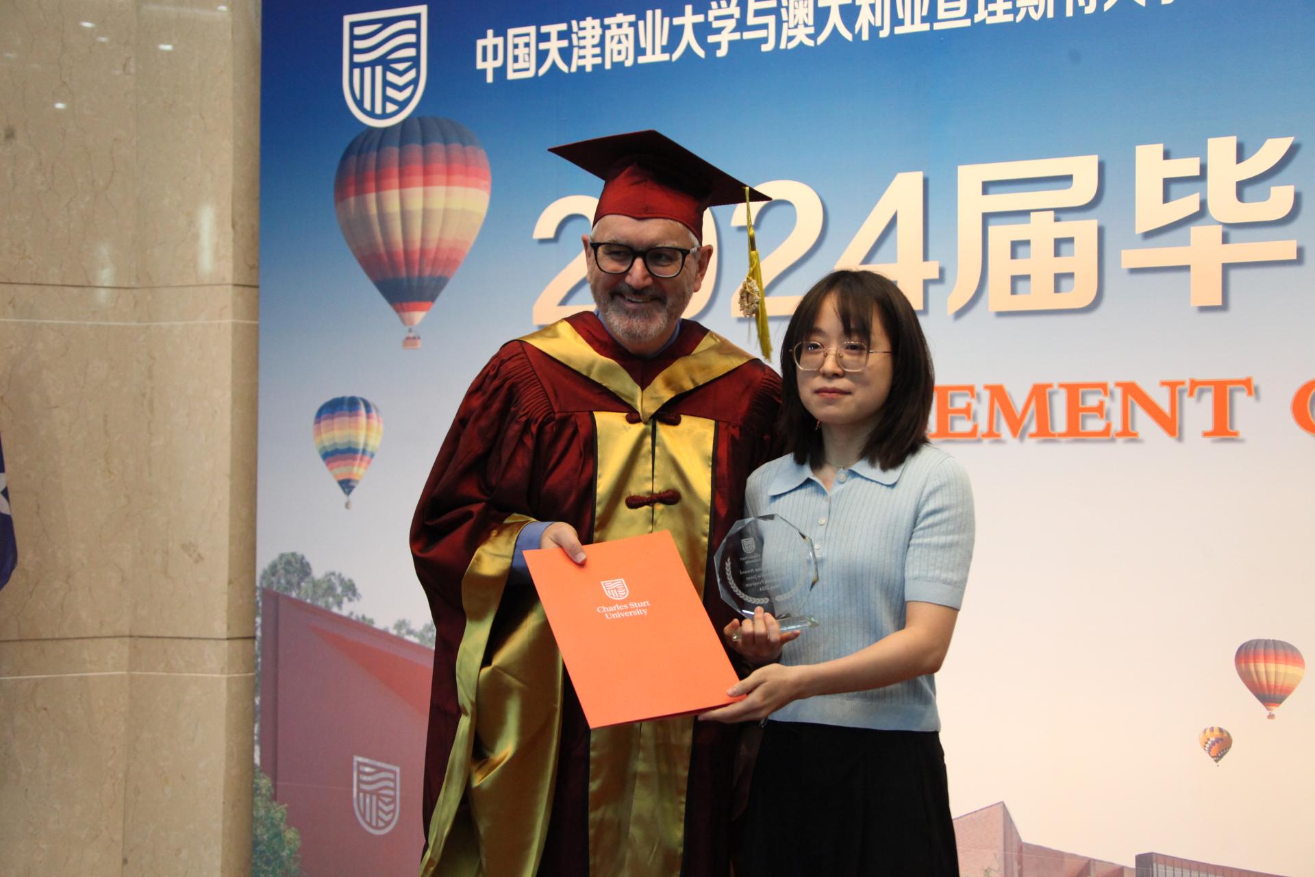 在典礼过程中,葛宝臻和Mike Ferguson一起为12名2024届财务管理(中澳合作)专业优秀学生颁发奖状。Lewis Bizo为2024年优秀教师颁发奖状。