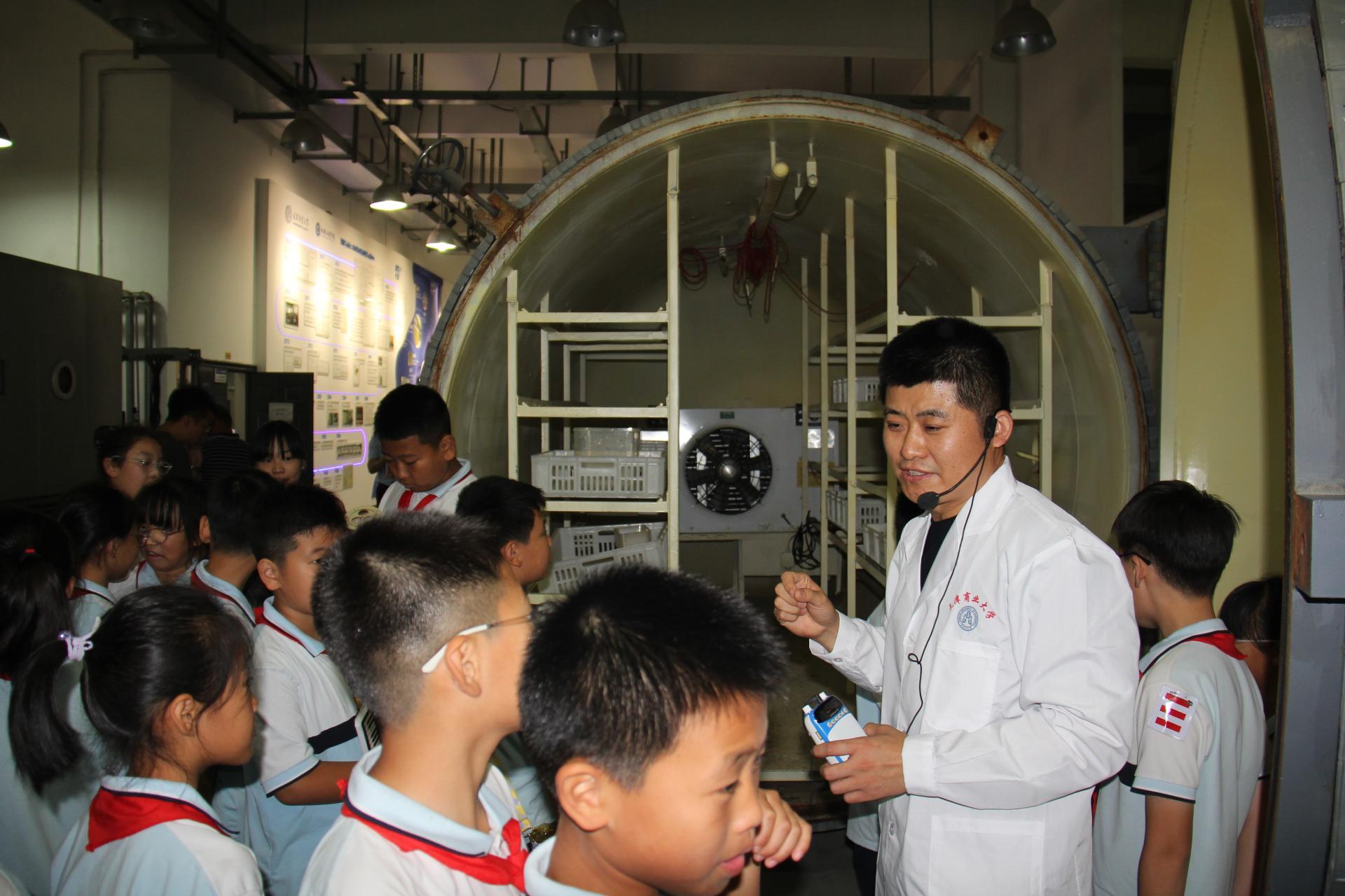 最后,副教授胡开永带领小学生们参观热能与动力工程国家级实验教学中心。胡开永重点介绍了碳达峰、碳中和对于全面建设美丽中国的重大意义,并结合学院案例讲解了制冷行业在推动双碳”目标下取得的成果和作出的努力。胡开永呼吁小朋友们要努力学习,依托科技创新支撑作用实现碳达峰、碳中和共同建设美丽中国。