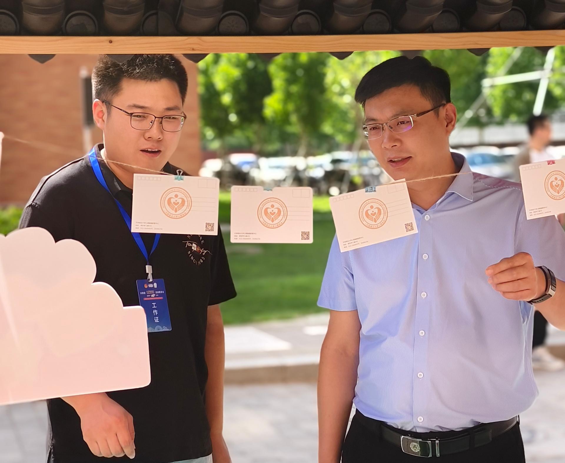 天商心协聚焦活动主题,精心设计“心语箱”“心享瘦”“心瞬间”“心印章”心理活动游戏,现场发放十余种心理健康宣传折页、积极心理语言明信片等心理健康宣传材料,天商校园明信片、“天商鹄”钥匙扣等文创产品。团中央维护青少年权益部相关负责同志、团市委主要负责同志、武清区委主要负责同志来到展位前听取beat365官网汇报。武清区委主要负责同志对展演活动给予高度评价,指出,展演活动契合青少年成长主题,有效把握当下青少年的成长特点,展现出了心理健康特色。