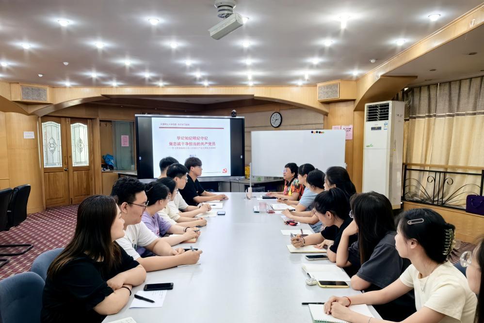 6月13日下午,校党委副书记蒋宗文在国培三楼会议室为信息工程学院师生讲授党纪学习教育专题党课,并与学院师生代表进行座谈。信息工程学院领导班子成员、学生党支部书记和毕业生党员代表20余人参加。