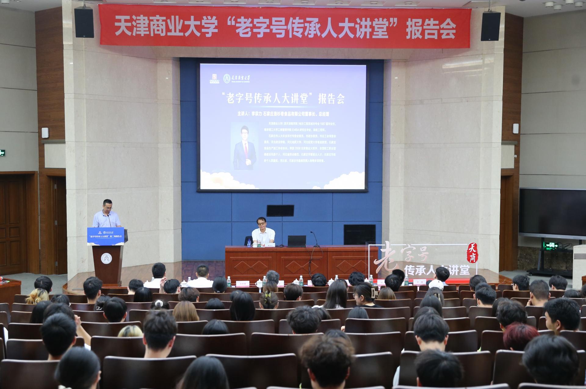 报告会上,李宗力深情回顾了他本人与天商的不解之缘及在母校就读期间学习成长的珍贵经历和难忘的同窗情谊,通过大量历史照片、视频、数据等资料,深入浅出,娓娓道来,生动讲述了他三十七年以来始终坚持“谦和朴诚 心怀敬畏 尚德守信 ”的理念,让传承116年历史的中华老字号“金凤”扒鸡不断守正传承与创新发展的历程,作为商务部首批认定的“中华老字号”,从产品、生产、技术、营销、管理、宣传等方面不断创新,奋力立足新时代潮头,主动扛起振兴老字号责任,让老字号焕发出新活力。报告结束后,李宗力与现场师生进行面对面交流。