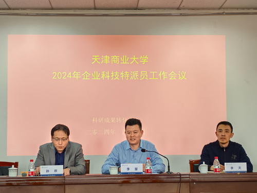 4月3日,学校组织召开2024年企业科技特派员工作会议。天津市科学技术局基础研究处主任李堃,天津博康天蜜科技发展有限公司、天津提尔科技有限公司、天津启诚伟业科技有限公司等八家企业代表应邀出席。各学院分管科研工作的相关负责同志和企业特派员教师代表参加。会议由科研成果转化中心相关负责同志主持。