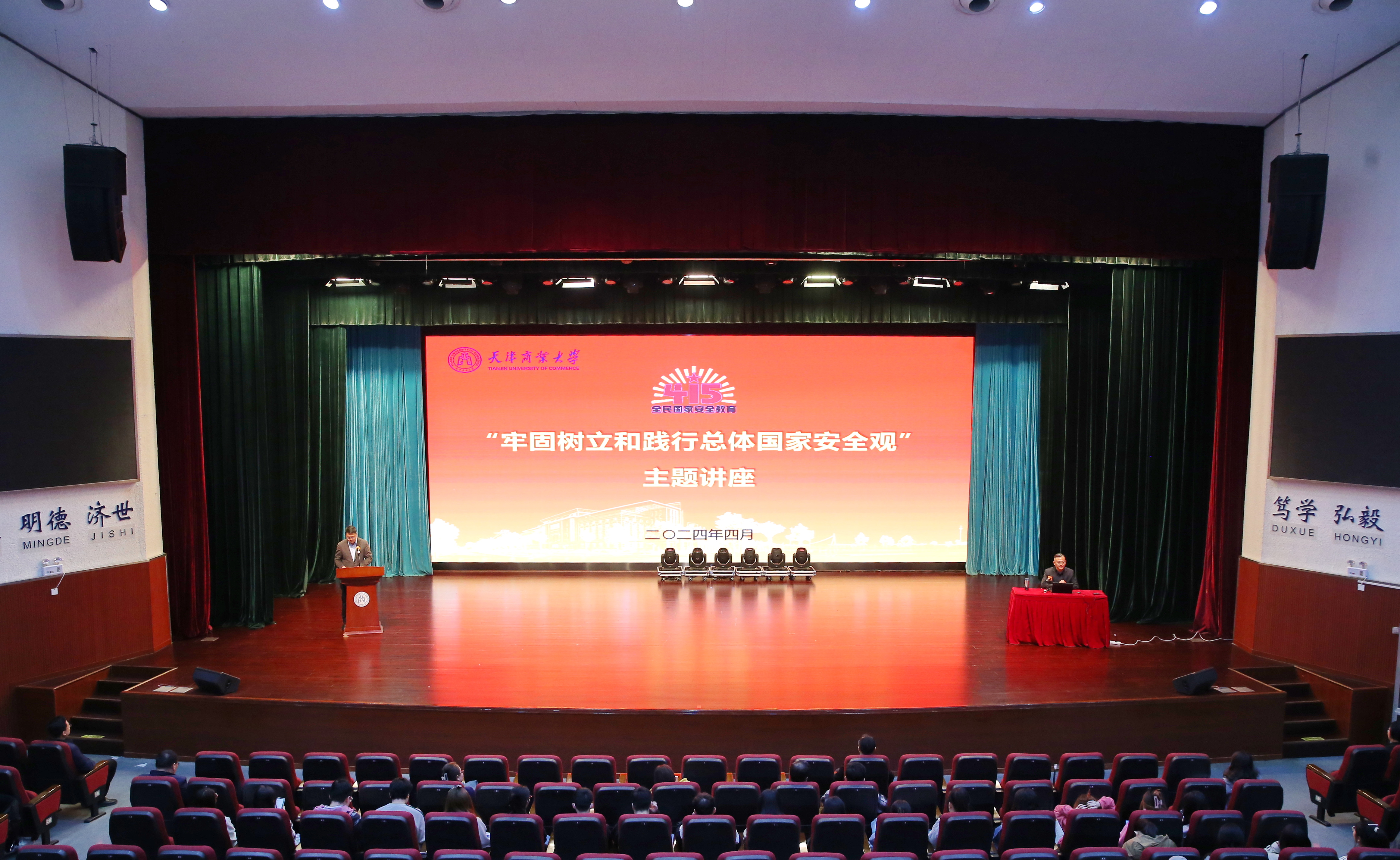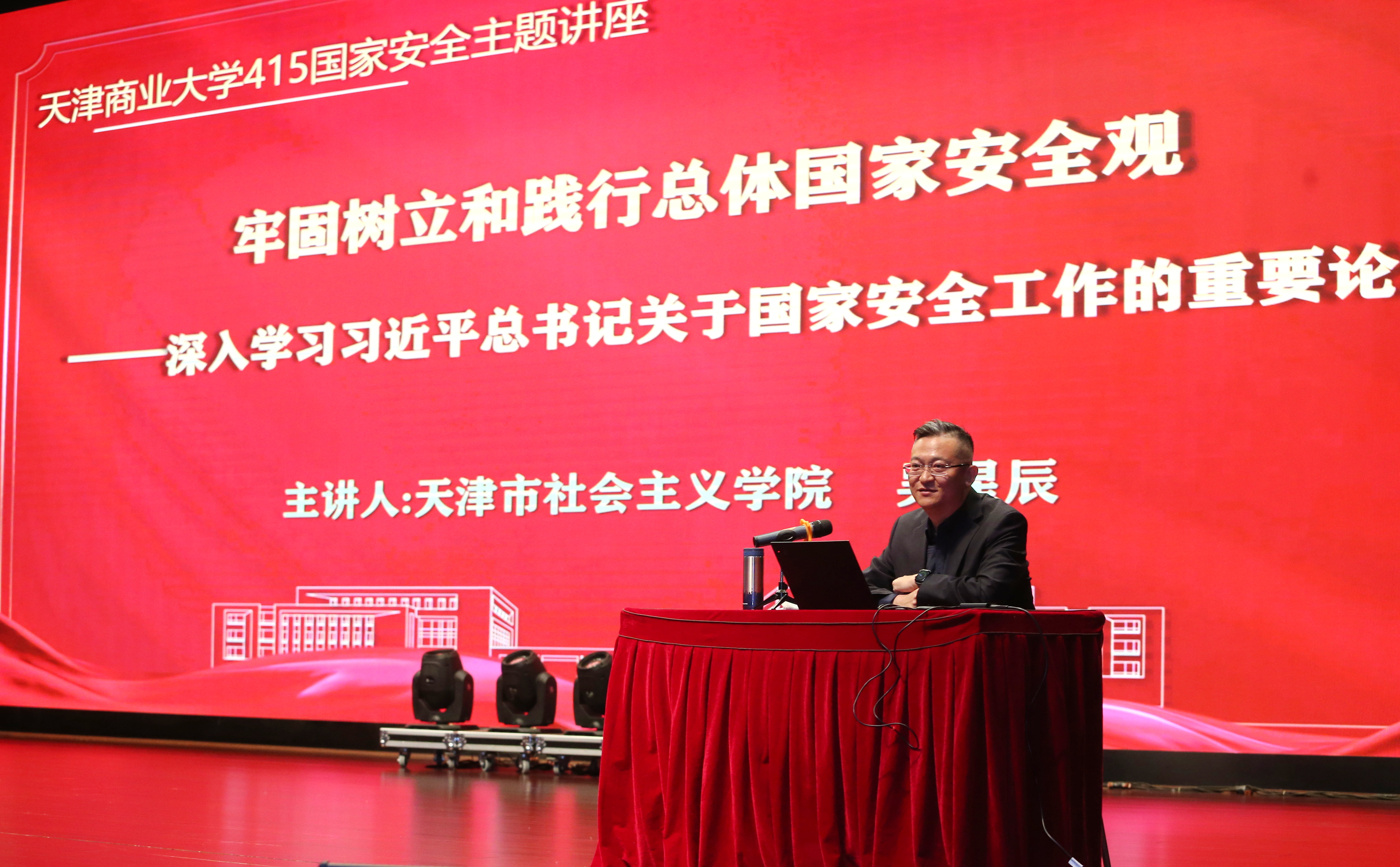 2024年是习近平总书记提出总体国家安全观10周年,4月15日将迎来第九个全民国家安全教育日。在第九个全民国家安全教育日即将到来之际,4月10日,学校在科学会堂举行“总体国家安全观·创新引领10周年”主题活动,特邀天津市社会主义学院吴星辰教授作全民国家安全教育日专题讲座,校党委常委、副校长黄凤羽出席并致辞。各学院副书记和辅导员、各职能部门教师代表、学生代表500余人参加活动。