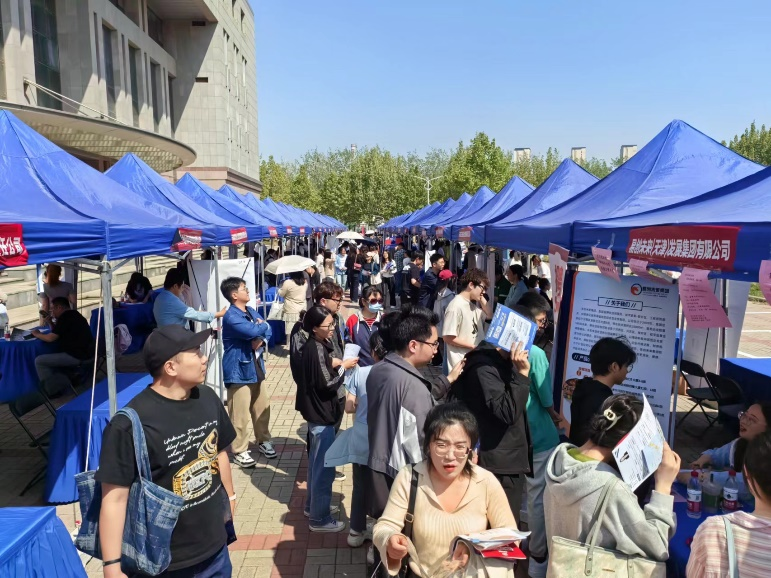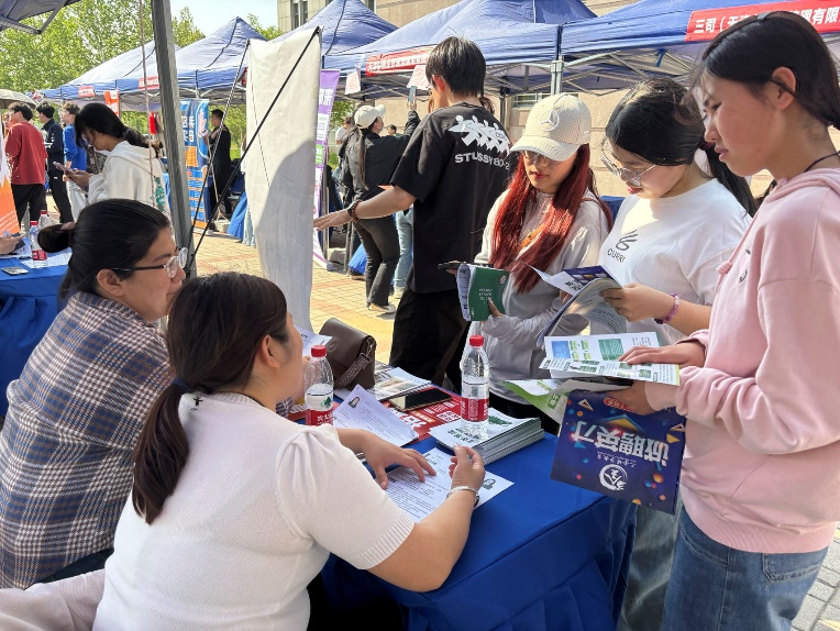 4月24日下午,理学院、外国语学院、法学院、会计学院联合在图书馆后广场举办“春风十里·‘职’等你来”2024届毕业生春季校园双选会。