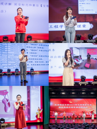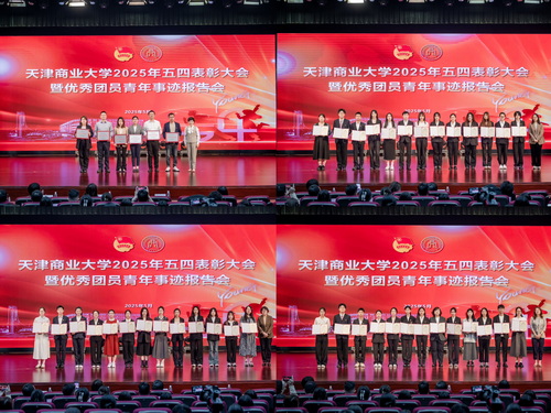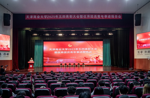 大会在团歌中拉开帷幕。校团委主要负责同志宣读2025年学校共青团表彰决定,号召广大团员青年坚定理想信念,勇担时代重任,在中国式现代化新征程上贡献天商青年的力量。与会领导和嘉宾为获奖集体和个人颁奖。五名优秀团员青年分别从思想引领、学业科研、创新创业、志愿服务、校园文化建设等方面分享他们的青春奋斗故事。