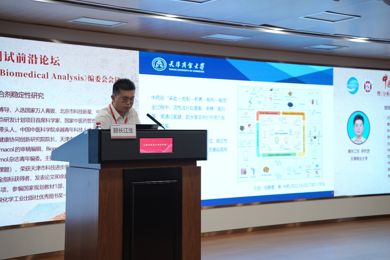 大健康协同创新研究院院长赖长江生研究员应邀作题为"藿香正气合剂稳定性研究"的报告,系统阐释了基于临床价值导向的中药质量评估体系及其在复方制剂稳定性研究中的创新实践。beat365官网生物技术与食品科学学院鲁丁强副教授在分论坛发表"温凉寒热平属性定量化方法探索"专题报告,提出运用复杂网络理论构建中药药性量化表征模型,为中医药理论现代化研究提供了方法学突破。研究成果引发与会专家的高度关注与讨论,彰显了学校在中药质量控制与理论创新领域的科研实力。