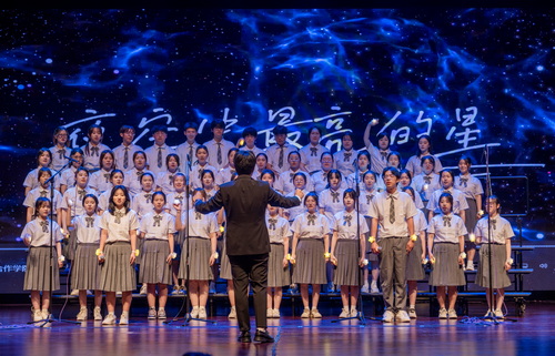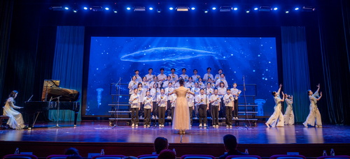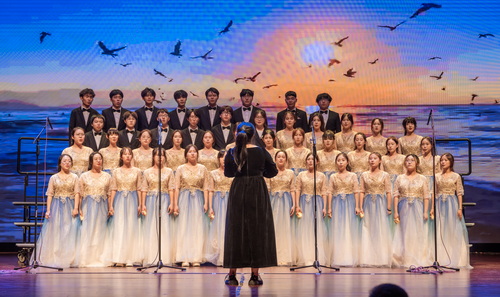 《我爱你中国》《有我》《在灿烂阳光下》……表达最质朴真挚的爱国情怀,耳熟能详的曲目带领观众感受到音乐的温暖与力量,让亲切与感动不断涌上心头;《错位时空》《少年中国说》催人奋进,铿锵有力的旋律唱出了青年学子敢作敢为、斗志昂扬的青春姿态;《勇气》《最初的梦想》《奔跑》《我的未来不是梦》同学们用温柔的和声给予每个追梦人勇往直前的力量;《夜空中最亮的星》《向光而行》《飞云之下》,用优美旋律宣告,纵使长路荆棘密布,也以炽热初心踏碎阴霾,奔赴黎明的方向;《世界赠予我的》将生活的酸甜苦辣转化为对世界的温柔礼赞;《相亲相爱》充满温情和力量,传递出“中华民族一家亲”的浓厚氛围;《明天会更好》用清澈的声线传递着对未来的坚定信念。星海艺术团GLEE人声乐团带来的特别节目《Attention》轻快动感、旋律优美,以无伴奏纯人声演唱方式,展现了欢快随性的青春热情。最后在星海艺术团合唱分团倾情表演经典曲目《牛仔很忙》《如果明天就是下一生》,优美动听的歌声赢得满堂喝彩。