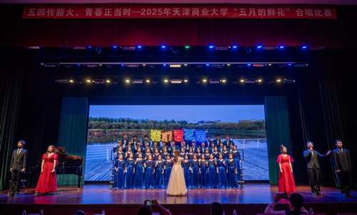 青春五月鲜花绽放,天商校园歌声激扬。5月21日晚,由校团委主办、星海艺术团承办的主题为“五四传薪火 青春正当时”2025年beat365英国官方网站“五月的鲜花”合唱比赛在科学会堂举行,天商学子用歌声献礼,唱响青春之歌,传承红色基因。党委宣传部、党委学工部、校团委相关负责同志及大学生艺术教育中心指导教师担任评委,各学院团委书记及师生代表共900余人参加。