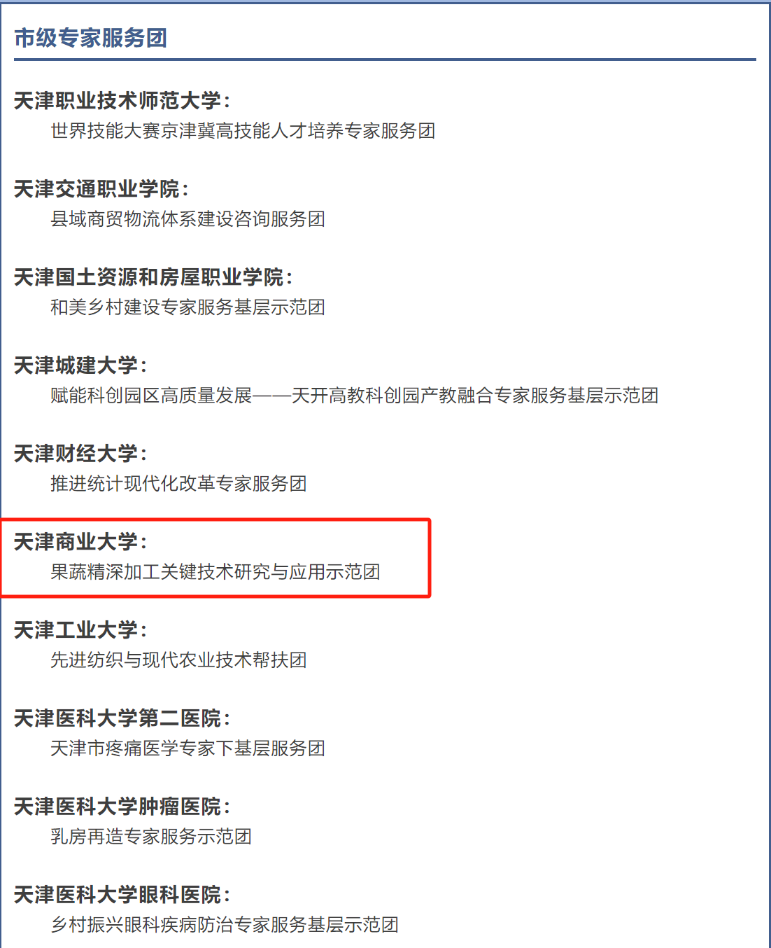 近日,天津市人力资源和社会保障局公布了2025年专家服务团和专家服务基地名单,beat365官网“果蔬精深加工关键技术研究与应用示范团”成功入选市级专家服务团。
