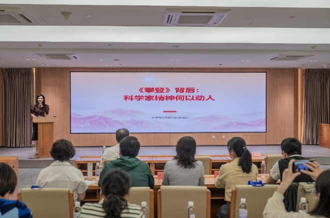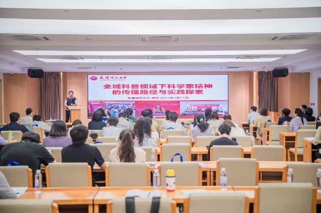 在专家报告环节,海河传媒中心教育频道主持人、播音指导张丽君和天津师范大学科技处科长刘通交流分享了科学家精神的传承与教育经验。