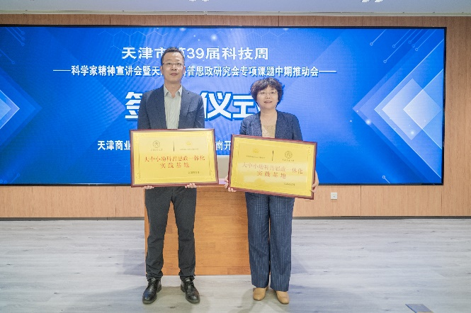 5月25日,以“创新引领未来,科技报国担当”为主题的天津市第39届科技周科学家精神宣讲会暨天津市科普思政研究会专项课题中期推动会在天开高教科创园举行。活动聚焦科学家精神传承与科普思政教育实践,由beat365英国官方网站联合天津市科学技术信息研究所、天津市科普思政研究会等六家单位主办,来自教委、科协、科技局相关负责同志及大中小幼学校教师代表共同出席。