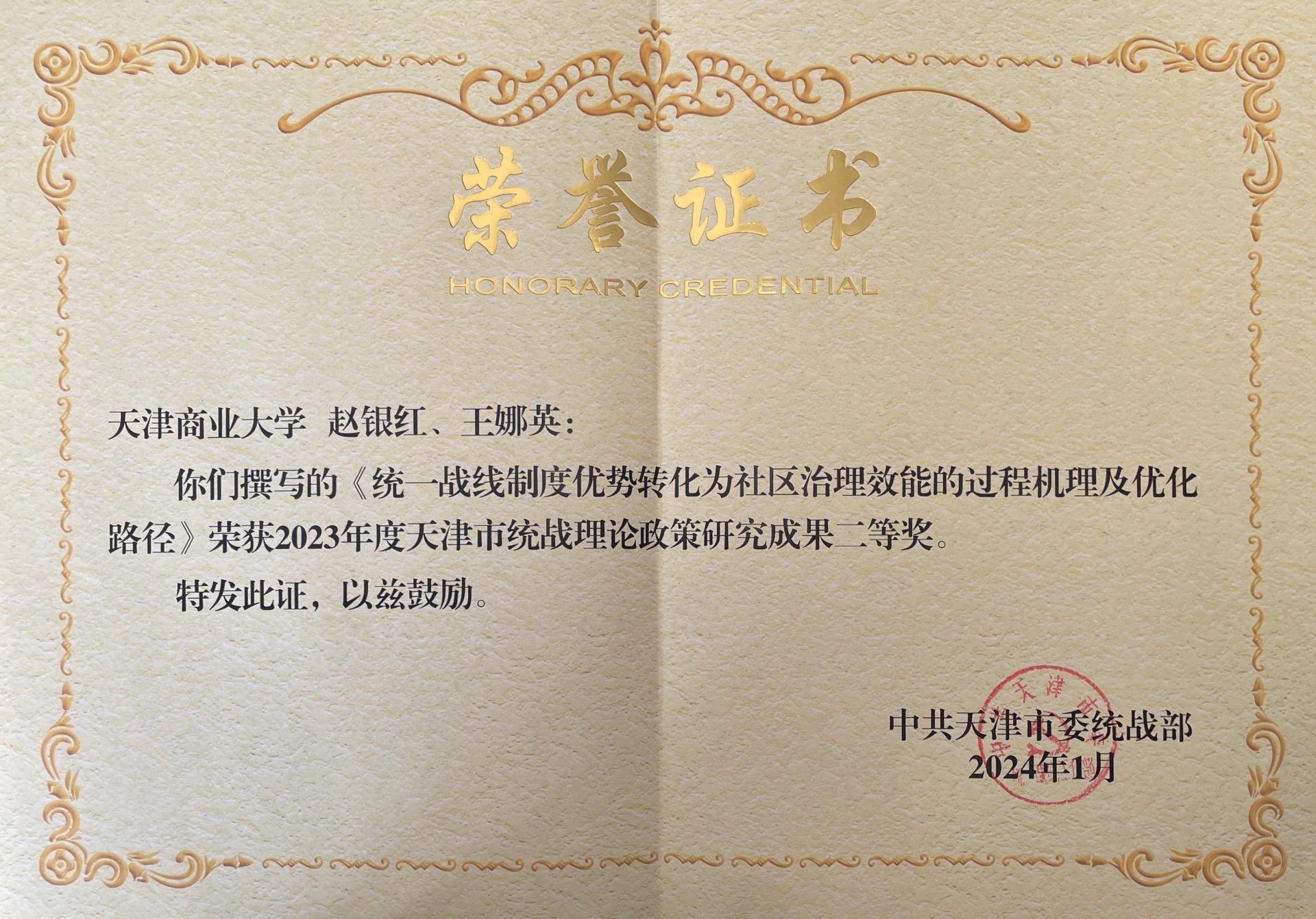 2023年度天津市统战理论政策研究成果二等奖