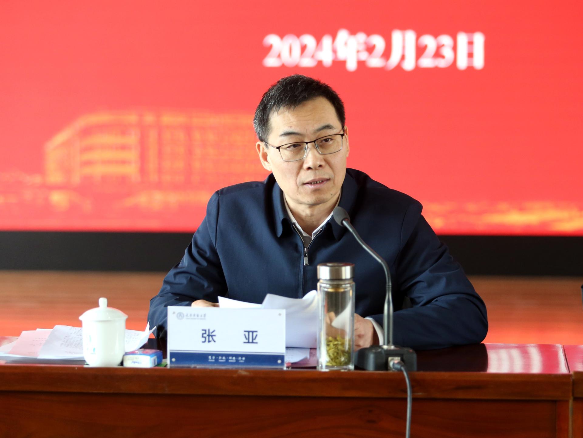 张亚传达了市委常委、市委教育工委书记王旭同志在2023年度教育系统所属单位党委书记抓基层党建工作述职评议会上的讲话精神,对学校2023年各二级党组织开展党建工作情况进行了总结,给予了充分肯定,并代表学校党委向各级党组织和全体党员干部过去一年的辛勤工作表示衷心的感谢。