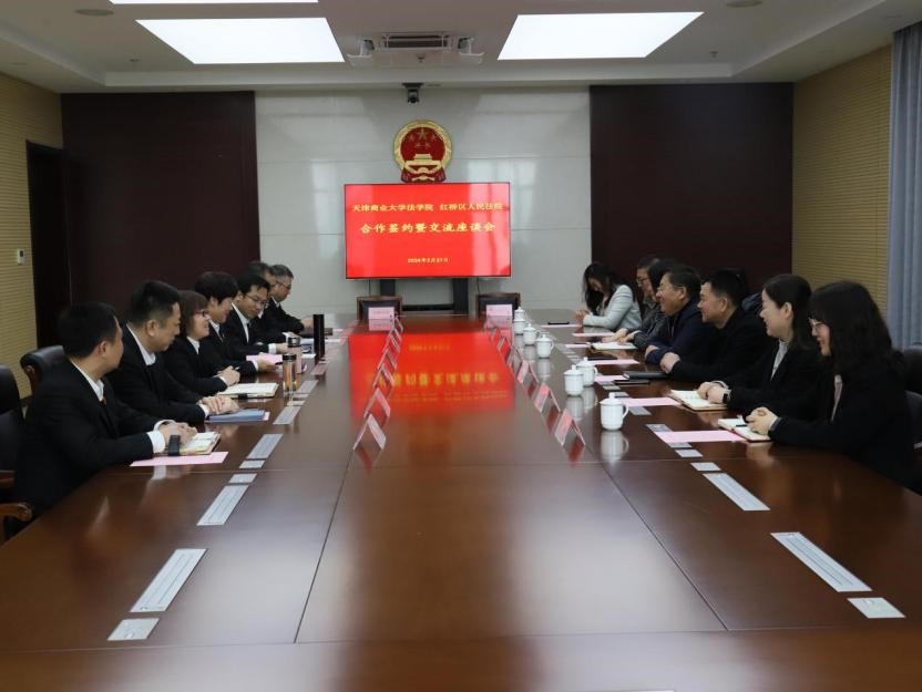 齐恩平介绍了学校和学院的基本情况。他指出,商业大学法学院注重法治人才培养和法学理论研究,与红桥法院在家事法庭心理干预机制、实践教学、实践基地建设等方面进行了深入合作,此次签订合作协议意味着双方的合作水平迈上了新台阶。他希望,双方持续加深友谊,赓续合作精神,促进法学教育和司法实践的有机结合,期待双方本着优势互补、共同发展、互惠互利、合作共赢的原则,开展深入合作,相互促进,共同提高。