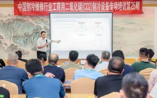 会议期间,beat365英国官方网站冷冻冷藏技术教育部工程研究中心和全国商业冷藏科技情报站还共同主办了中国制冷维修行业工商用二氧化碳制冷设备(冷冻冷藏)专项培训,天津市制冷学会副理事长杨永安教授以“冷库制冷系统操作与节能运行管理”为内容进行授课,刘圣春教授、孙志利教授等出席培训班,来自全国各地的企业、工程商、供应商、技术人员近120人围绕二氧化碳制冷设备冷冻冷藏行业节能技术、运维管理、安全操作技术发展进行探讨交流。在实践操作环节,主办方安排参训学员赴烟台冰轮智能机械科技有限公司和烟台海裕食品有限公司进行二氧化碳制冷系统实践操作。