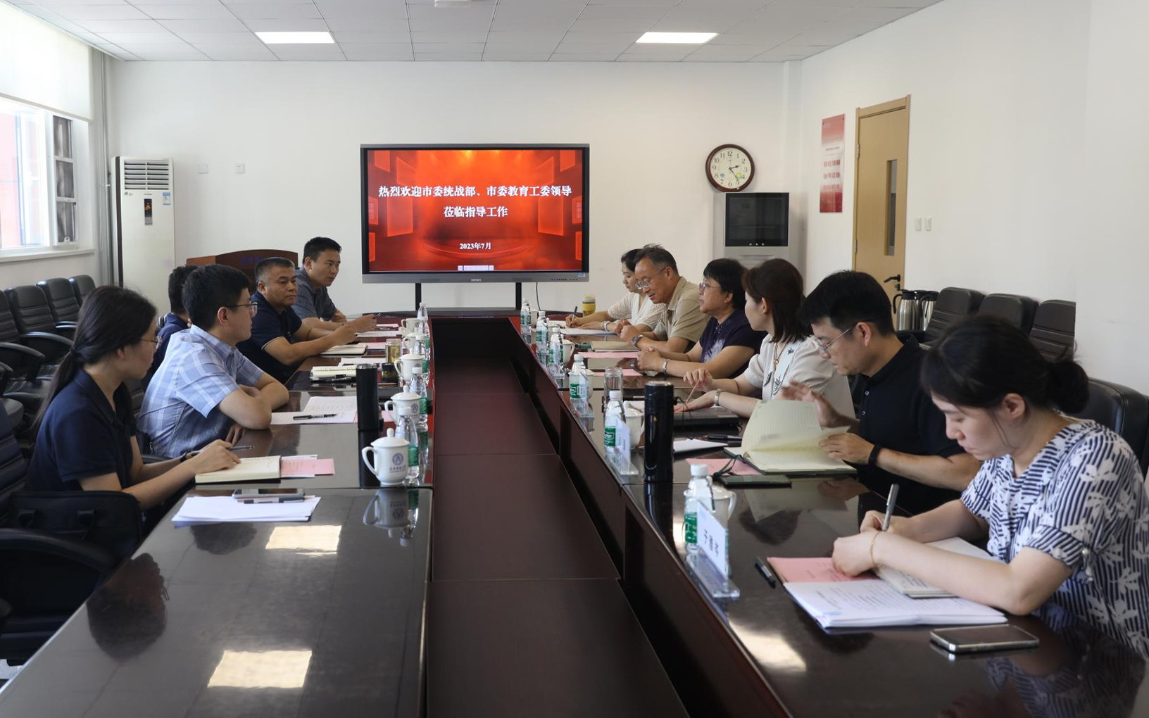 7月4日,市委教育工委统战处处长祝健、市委统战部党外干部处副处长刘文高一行来beat365官网调研。校党委副书记蒋宗文出席座谈会。党委组织部、党委统战部、管理学院、理学院负责同志参加会议。