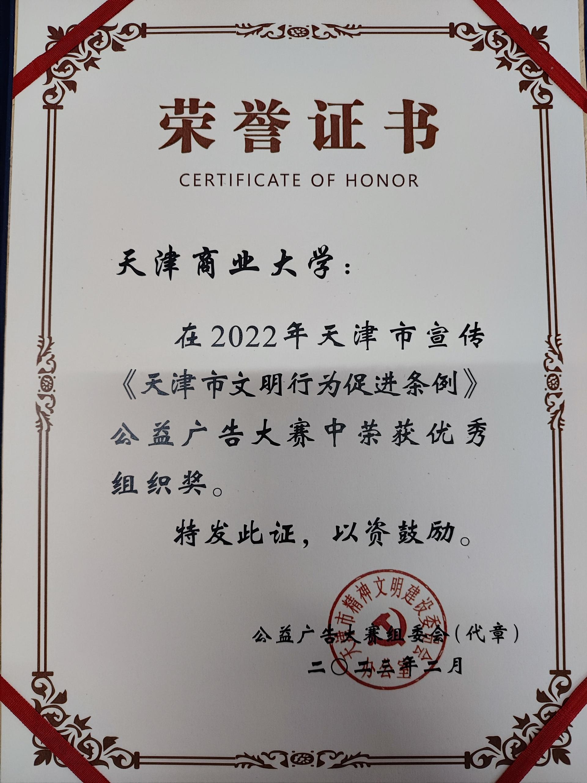 宣传《天津市文明行为促进条例》公益广告大赛是由市文明办联合市爱卫办、市教委、市公安局、市城市管理委、市市场监管委共同举办的大赛,是一项具有指导性、教育性的设计赛事,旨在强化大学生文明意识,提高大学生思想道德水平。(审稿:罗晖)