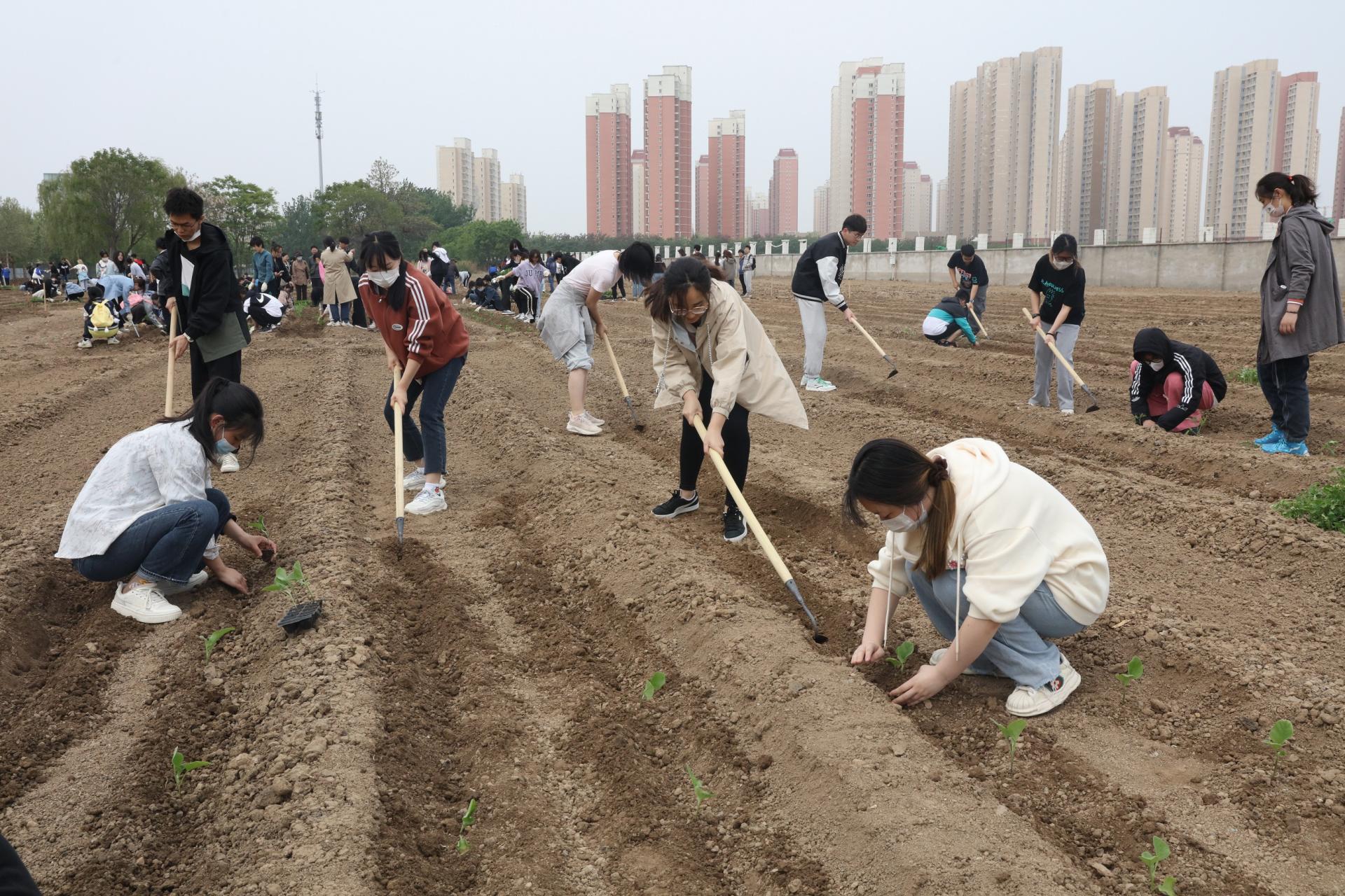 在五一劳动节和五四青年节即将到来之际,为进一步教育引导学生崇尚劳动、尊重劳动、热爱劳动,4月27日上午,党委学工部组织200余名师生代表来到“天商农场”开展播种育苗劳动实践。