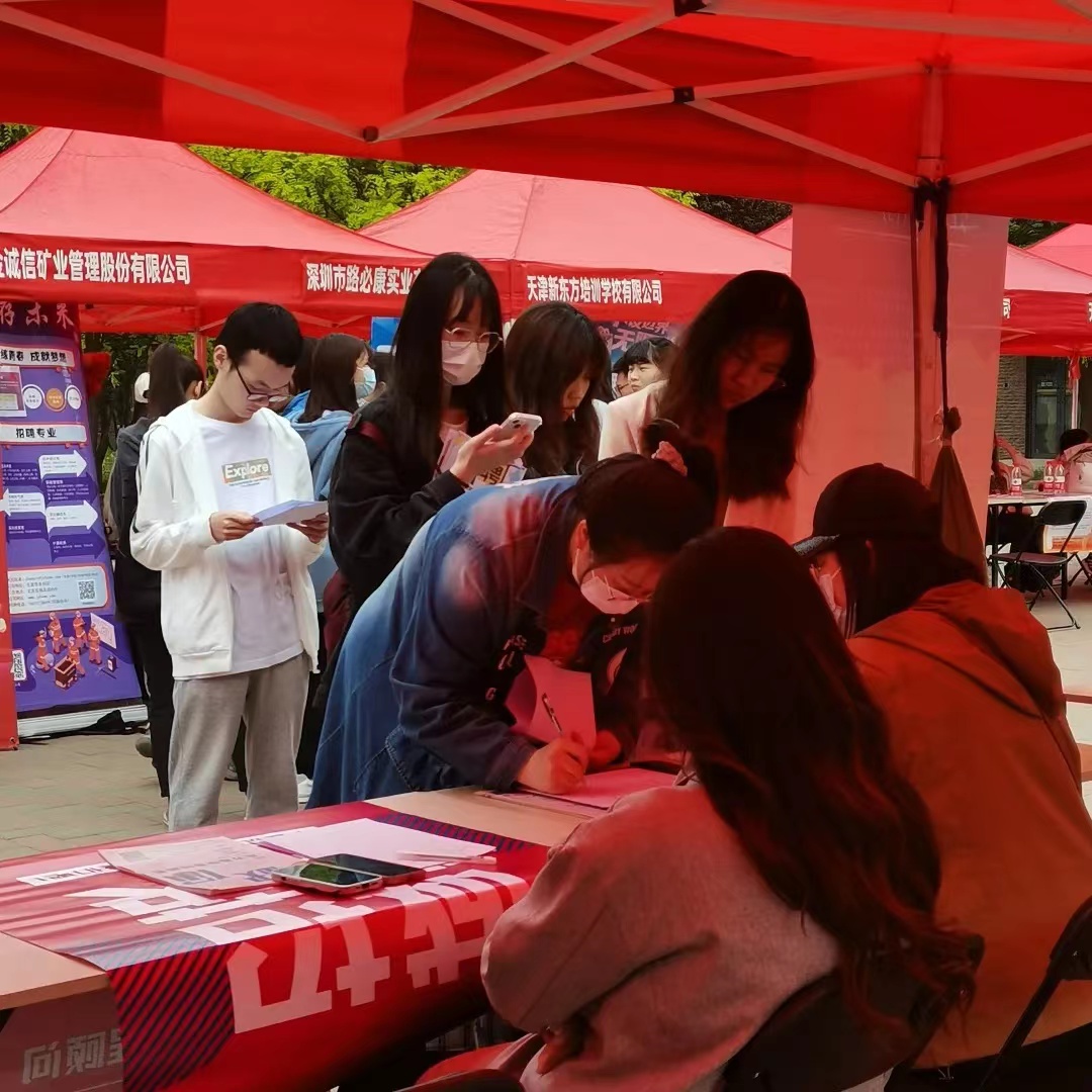 4月27日下午,理学院、法学院、外国语学院在南区学生公寓广场联合举办“春风十里·‘职’等你来”2023年春季校园双选会。