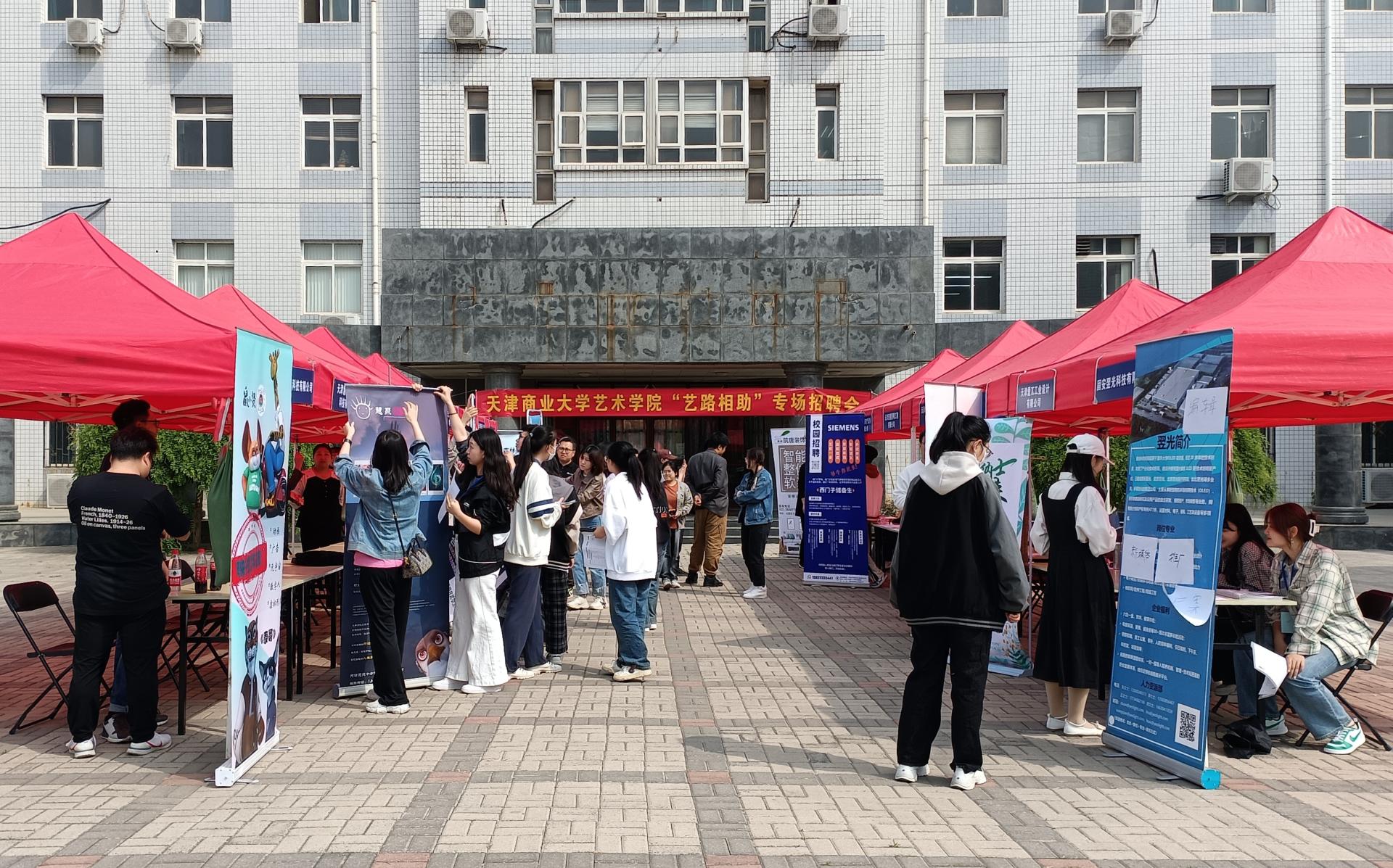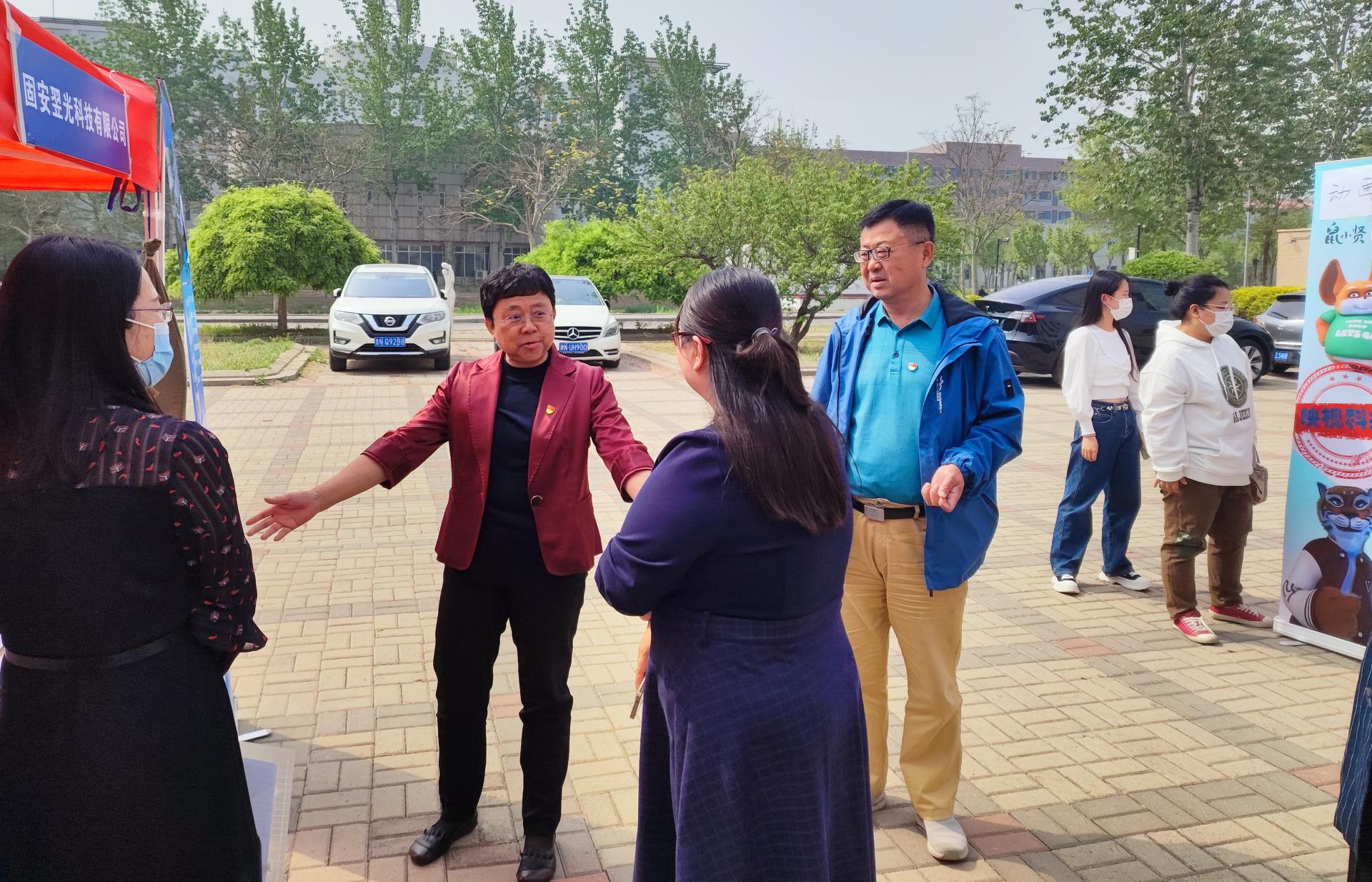 日前,艺术学院在南区6号教学楼前举办“艺路相助”2023年春季专场招聘会,校党委副书记蒋宗文现场指导招聘和就业服务工作,并与招聘企业进行深度交流。