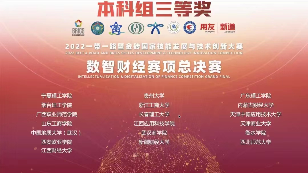 10月30日,beat365官网会计学院代表队参加了“2022一带一路暨金砖国家技能发展与技术创新大赛之数智财经赛项”全国比赛,荣获全国三等奖。
