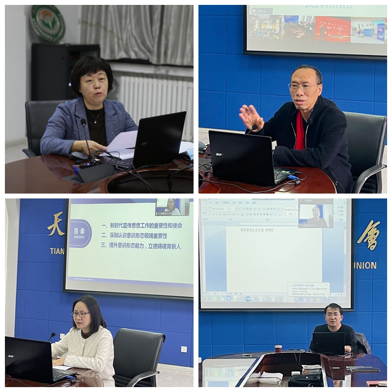 孙郁以“强化纪律规矩,建设清廉校园”为题,全面梳理师德师风相关规定和要求,并结合自己长期从事高校纪检监察工作的实践经验深入浅出剖析高校教师违纪违法典型案例,要求新入职教师把学习领会党的二十大精神作为必修课,坚定理想信念,坚守廉洁底线,学为人师,行为世范,做干净、担当的天商人和领路人。