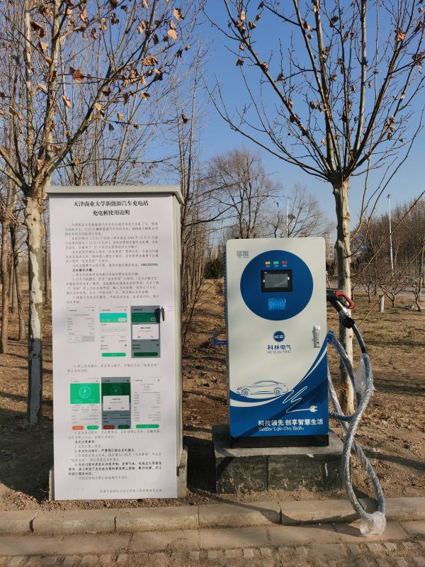 新能源汽车充电站位于体育馆东侧,建有快速充电桩2台,慢速充电桩8台,一个充电桩对应两个停车位,可为10辆汽车同时充电;电动单车充电站位于17号学生公寓北侧,建有充电插座6个。2个充电站都采取无人值守、程序化操作模式,均可通过微信小程序“充电管家”扫码进行充电管理及缴费,整个操作流程简单便捷。