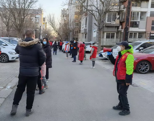 王存峰从1月12日上午8点半开始,以在职党员双报到身份到红桥区咸阳北路街道同心社区报到,协助开展社区二筛准备工作。下午1点正式开始二筛,王存峰主要负责群众引导,秩序维护工作,直到7点半大筛结束。12日晚上8点接到电话,按照市组织部安排正式到同心社区报到,接受专业培训,为第三次大筛做准备。(审稿:曹军)