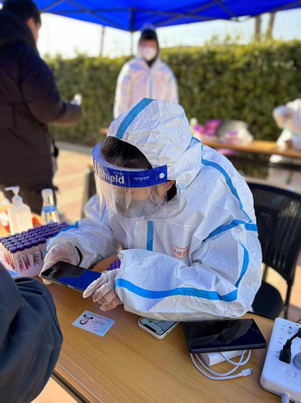又是一轮全员核酸检测,青年博士教师李婉晴穿起防护服,成为一名中北镇郦景园社区的 “大白”。她细致严谨的录入每个人的信息,保证不出任何差错,密切关注着大家的不同情况,嘱咐行动不便的老年人慢点走,鼓励有些害怕的小朋友。社区为志愿者提供了暖手袋、暖宝宝,连矿泉水都是温的。排队速度从一筛的三个小时,降到现在的十几钟,是社区、志愿者、医护人员团结协作的功劳。她说:“几个小时的工作结束,身上是冷的,但是心是热的,希望今天的‘大白’也能给大家带来一些温暖。”