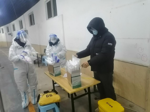 1月15日早晨6点,天津天还没有亮,但是第三次全员核酸检测已经准备就绪。包装工程系副主任、教工党支部副书记张晓川下沉到南开区水上公园街道临园里社区,协助居委会担负起协调组织和现场秩序引导工作。上午5个多小时的时间,张晓川和所有的志愿者及社区工作人员一样,不曾喝水、休息,不间断地提醒核酸检测的群众保持间隔、戴好口罩,搀扶老弱病残的群众通过绿色通道进行检测。上至八十多的老人,下至两三岁的孩子,每一个特殊人群都被关照着。他说:“社区工作人员,志愿者,参与核酸检测的群众,都是好样的,我们坚信抗疫一定成功!”