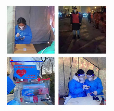 为协助北辰区北仓镇做好第三轮核酸检测工作,经济学院4名家住天津市的青年志愿者于1月15日凌晨4点来到北仓镇延吉道核酸采样点,与医务工作者、下沉党员干部、青年突击队、其他志愿者一同忙碌在核酸检测一线,争分夺秒完成核酸采集工作。