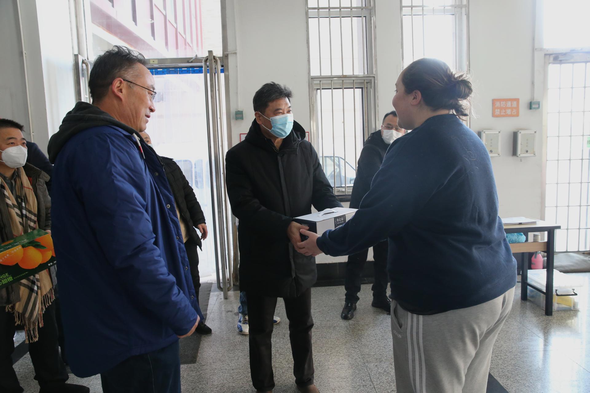 葛宝臻一行先后来到瑞德厦餐厅、网络安全和信息化办公室、保卫处、办公楼总值班室等处看望慰问坚守岗位干部职工,并到国际教育合作学院看望慰问留校工作外教Serret Celine Alexis。每到一处,与大家亲切交谈,给大家拜年,祝大家新春快乐、万事如意、阖家幸福,并详细了解疫情防控及各项工作的运行情况。
