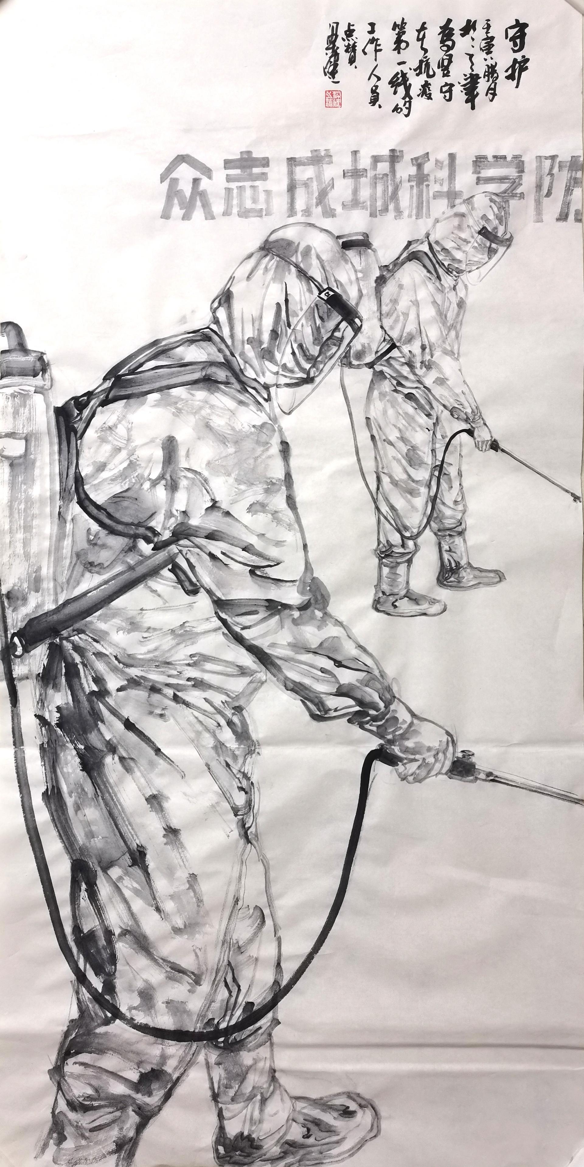 马鸿民老师作品《凝心聚力 共抗疫情》