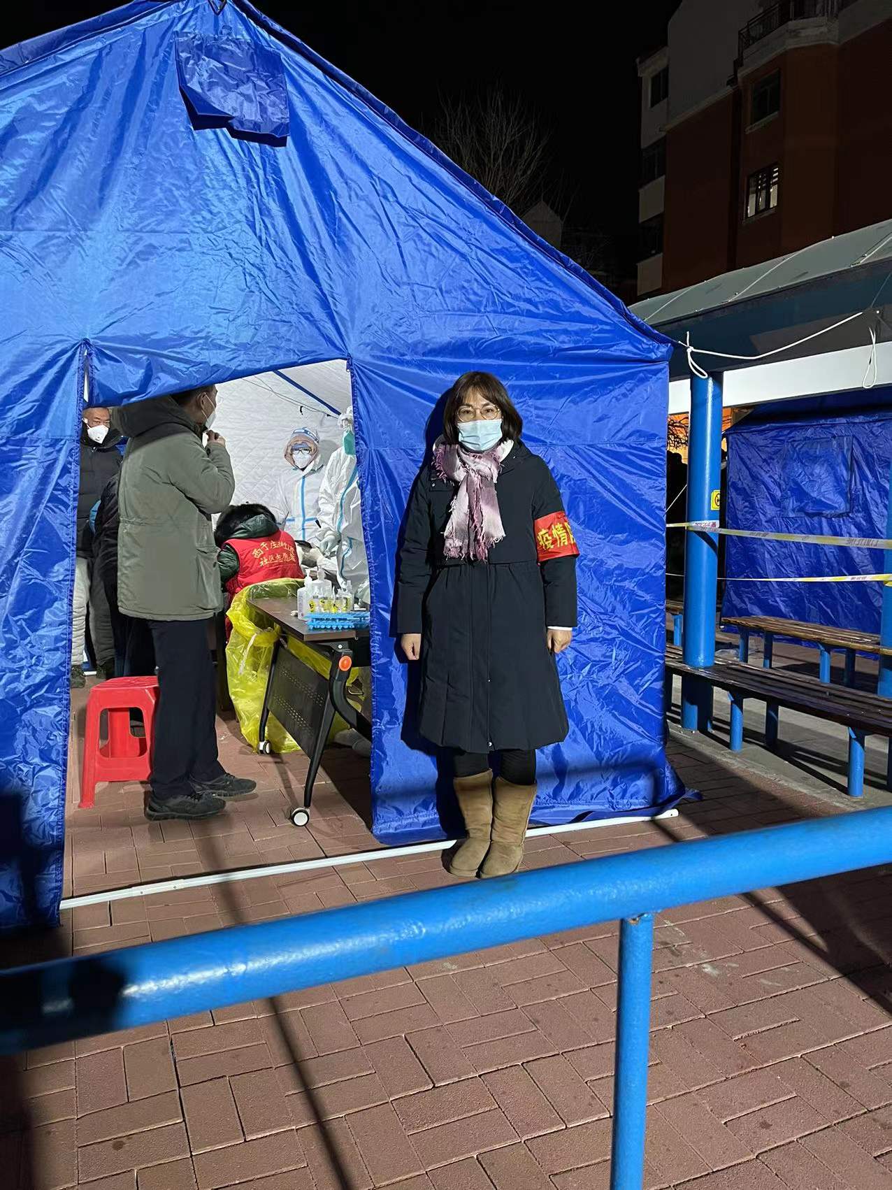 1月10日,党支部书记赵彦巧主动向所在社区申请参加志愿服务,承担梅苑小学一个位点的手动录入等登记工作,直至所属区域第一轮核酸检测完成。1月12日,社区的第二轮核酸检测开始,赵彦巧又主动找到社区,参与了核酸检测点临时布置、路线引导、检测登记多项工作。她还拿来自家的两盏台灯,照亮夜幕下的登记扫描过程。凛冽的寒风挡不住她坚定的脚步,深冬的严寒冷却不了她服务的热心。