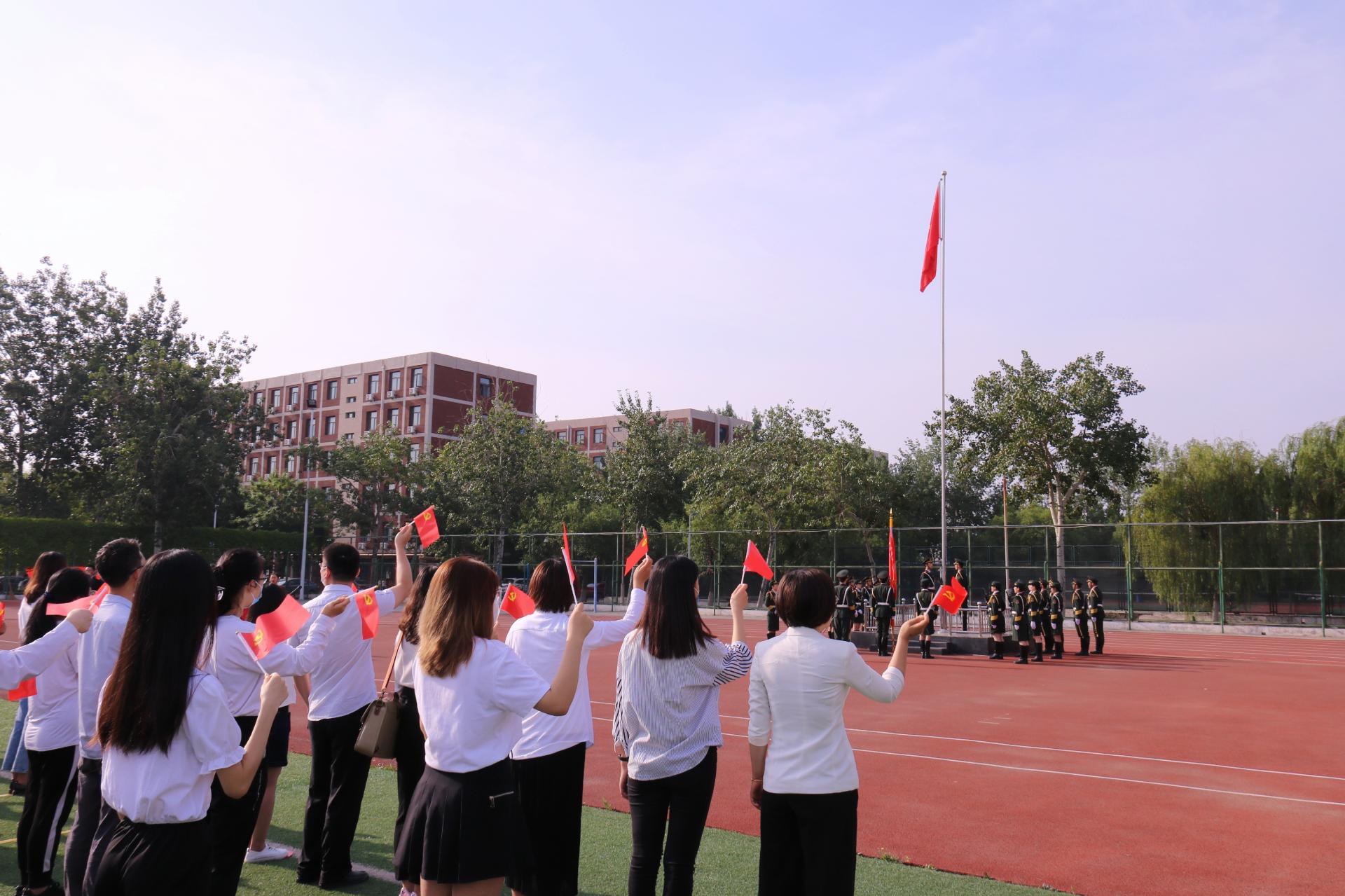 7月1日上午,学校在校运动场举行庆祝中国共产党成立100周年“百年华诞 我心向党”主题升国旗仪式。学院党委副书记、学生党支部书记、辅导员、学工部干部、团委干部、人民武装部干部、学生党员代表、校院两级学生会骨干等500余人参加活动。仪式由校团委主要负责人主持。