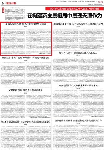 黄凤羽教授以“落实新发展理念推动天津实现高质量发展”为题作交流发言,指出“十四五”时期推动天津经济社会实现高质量发展,应注重深入贯彻落实新发展理念,把注意力集中到解决发展不平衡不充分问题上来。应注重增强创新能力,深入实施创新驱动发展战略。应注重促进制造业高质量发展,坚定不移坚持制造业立市。应注重推进实现天津港高质量发展,全力打造高质量智慧港口。应注重推进海洋产业的高质量发展,推动海洋产业结构优化升级。12月21日《天津日报》理论创新版刊发了黄凤羽教授的发言摘要。