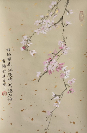 据庄雪阳介绍,“创作《樱花图》这幅作品的初衷,主要是感佩奋战在一线的医务工作者,医者心中守护人民健康是‘初心’,而这种无所畏惧的逆向前行,也是我创作的灵感来源,以画笔礼赞英雄,向他们表达敬意和感谢。”作品运用中国艺术意向造型和象征的手法,表达对战胜疫情的坚定决心和对美好未来的憧憬。庄雪阳说:“作品刚好完成于庚子年立春日,仅以此幅作品致敬奋战在抗疫一线的英雄,寒冬雪已尽,春风拂面来,相约樱花烂漫时,武汉加油,中国必胜!”