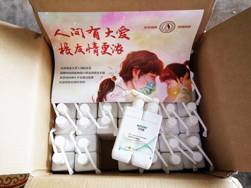 新冠肺炎疫情当前,防疫物资依然紧缺……上海校友会却情系母校,齐力为母校筹措抗“疫”资源。50瓶300毫升的医用皮肤手消毒液、1000个符合标准的防护口罩,每一份物资都凝聚着校友会成员对母校的情谊。