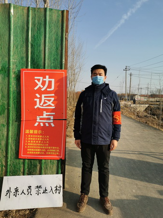 一张小长桌、一只体温计、两把凳子、构成了济南市商河县许商街道办事处前邵村的防疫检测点。春节过后,这里迎来了一批特殊的志愿者——从各地返乡的大学生。该村疫情防控进入关键期,在人员紧缺的时刻,邢义刚和村里的大学生提出了志愿服务的想法,大家纷纷赞同表示支持,邢义刚等10名返乡大学生写下“请战书”,主动请缨,经过向村党支部和村委会汇报申请,前邵村大学生防疫志愿服务队正式成立,有效缓解了人员紧张的情况。