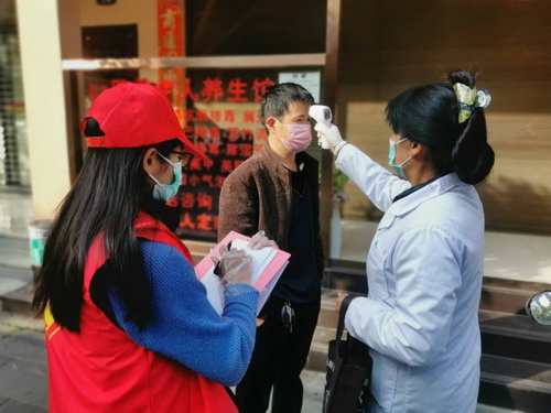 胡锦,经济学院金融学专业1704班的一名学生,也是一名入党积极分子。她积极响应学校和学院号召,2月8日至今,一直在家乡云南省德宏傣族景颇族自治州梁河县做志愿服务。起初她负责的是帮助梁河县勐底社区完成湖北籍人员的网格化管理,核实该社区湖北籍人员的租房信息、居家健康状况。她还同梁河县遮岛镇人民政府工作人员一起,到县城人员密集的农贸市场等地方进行疫情防控相关宣传,同时进行检查废弃口罩专用垃圾桶是否完成消毒、张贴公共场合进出扫码小程序宣传材料等多项工作。此外,胡锦与社区医护人员一同对社区内外地返回的省外人员进行每日两次的上门体温测量,并进行数据的实时记录、整理等。她说:“我从小在云南省德宏傣族景颇族自治州梁河县长大,对家乡有很深厚的情感,每当在媒体报道上看到有人确诊就很难受,社区志愿服务工作开学前我会一直做下去。”
