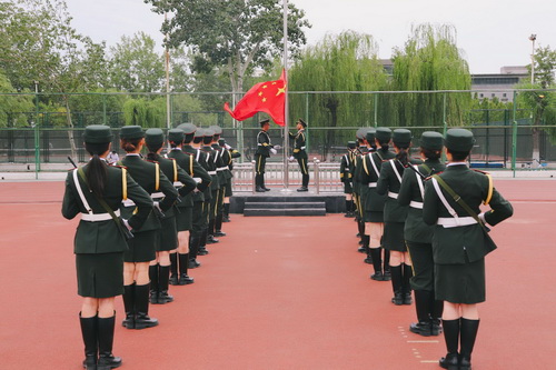 国旗护卫队着装整齐,迈着矫健的步伐护送着鲜艳的五星红旗入场。伴着《义勇军进行曲》的响起,五星红旗冉冉升起,全体唱国歌、行注目礼。来自经济学院和公共管理学院团员代表随后在国旗下发表了以《心怀祖国 逐梦前方》为主题的演讲,引起广大团员青年的共鸣。beat365官网退休教师来自法学院邢素军教授朗诵了《读中国》,表达了对祖国的热爱之情。活动中,各学院团委书记为优秀团员代表佩戴团徽。校学生会副主席带领700余名团员青年重温了入团誓词。在全体团员青年齐唱团歌中活动圆满结束。