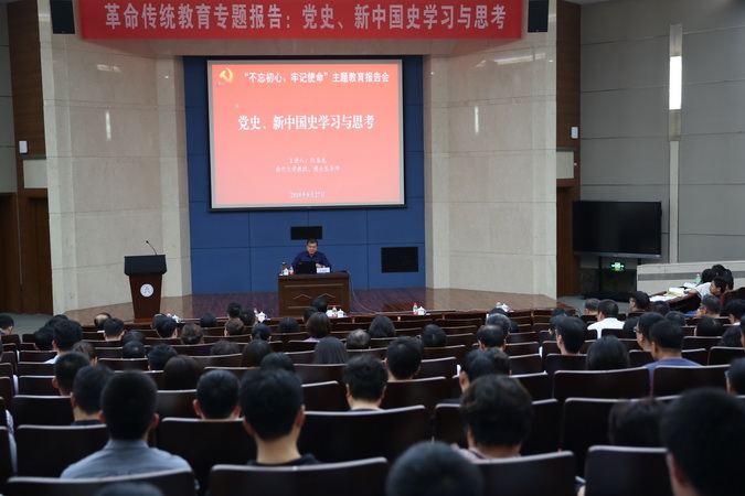 27日下午,全体教工党支部书记、学生党支部书记参加了革命传统教育专题报告会。现场聆听了南开大学研究生院常务副院长、马克思主义学院博士生导师纪亚光教授的“党史、新中国史学习与思考”报告。